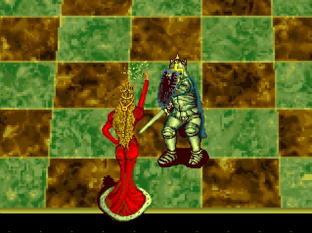Battle Chess is a quite typical chess game, but it comes with a twist: all pieces are represented by small, realistic figures that walk around on the chessboard, and when one piece takes another, they both take part in an animated battle. There is a different animation for each permutation, depending on which pieces are capturing or being captured. You can also play in 2D without animation. The game's opening library includes 30,000 different moves, ensuring a variety of games will unfold across the 10 skill levels.