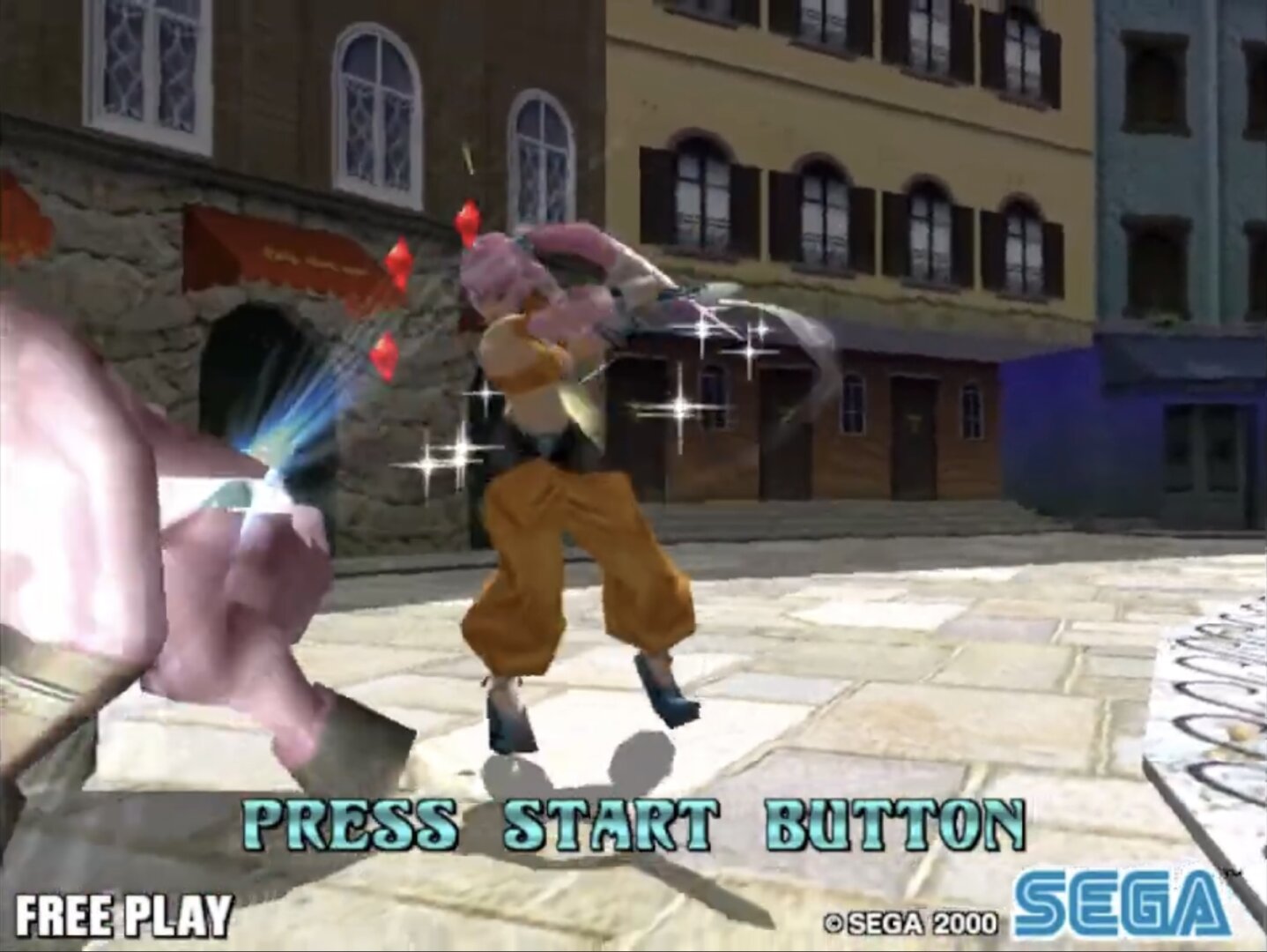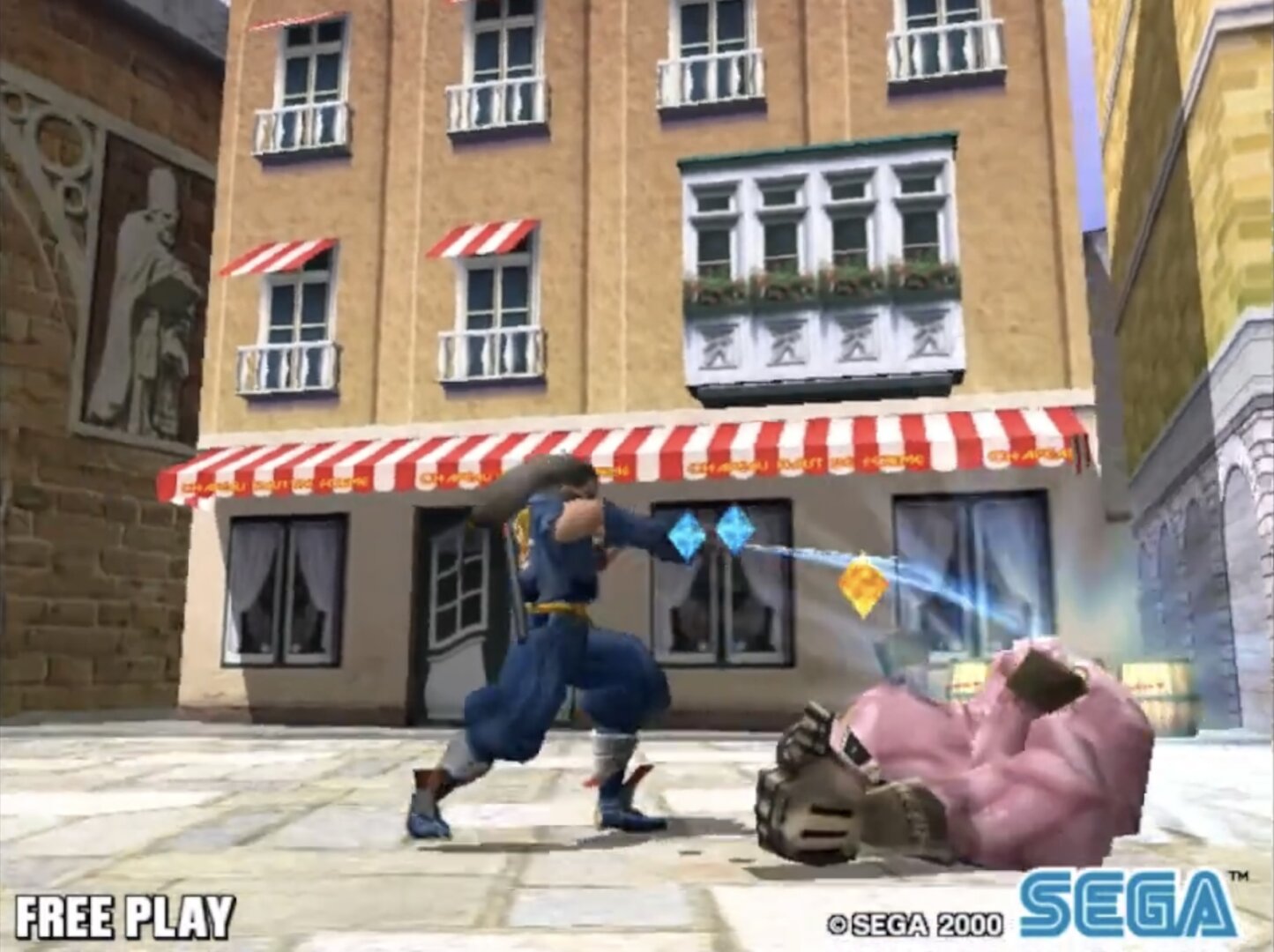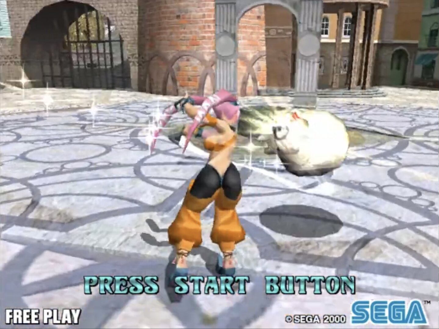 Slashout (スラッシュアウト) is a Beat 'em up/Hack and Slash video game published by Sega Enterprises and developed by Amusement Vision released on 2000 for the Arcade.
