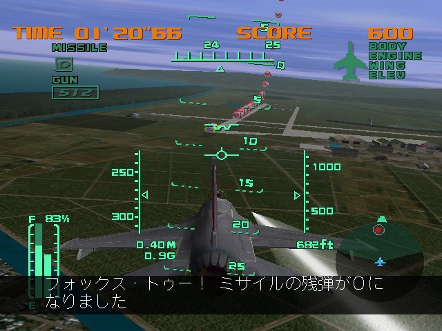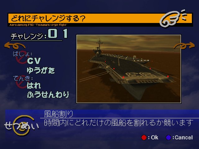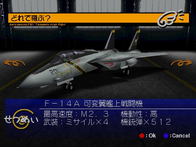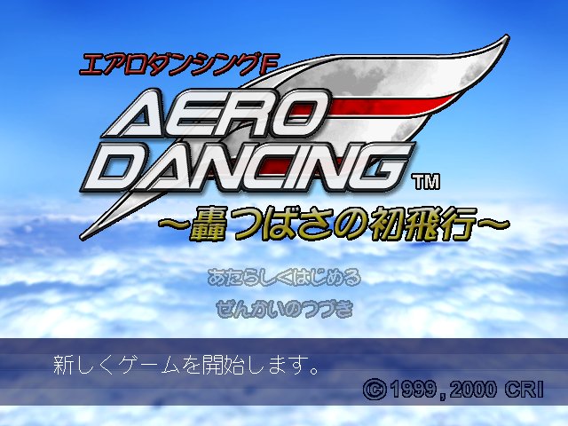 Aero Dancing F: Todoroki Tsubasa no Hatsu Hikou (エアロダンシングF 轟つばさの初飛行) is a Flight Simulator video game published by CRI released on November 16th, 2000 for the SEGA Dreamcast.
