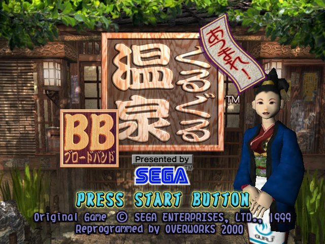 Atsumare! GuruGuru Onsen BB (あつまれ!ぐるぐる温泉 B B) is a Board Game video game published by SEGA released on October 31st, 2000 for the SEGA Dreamcast.