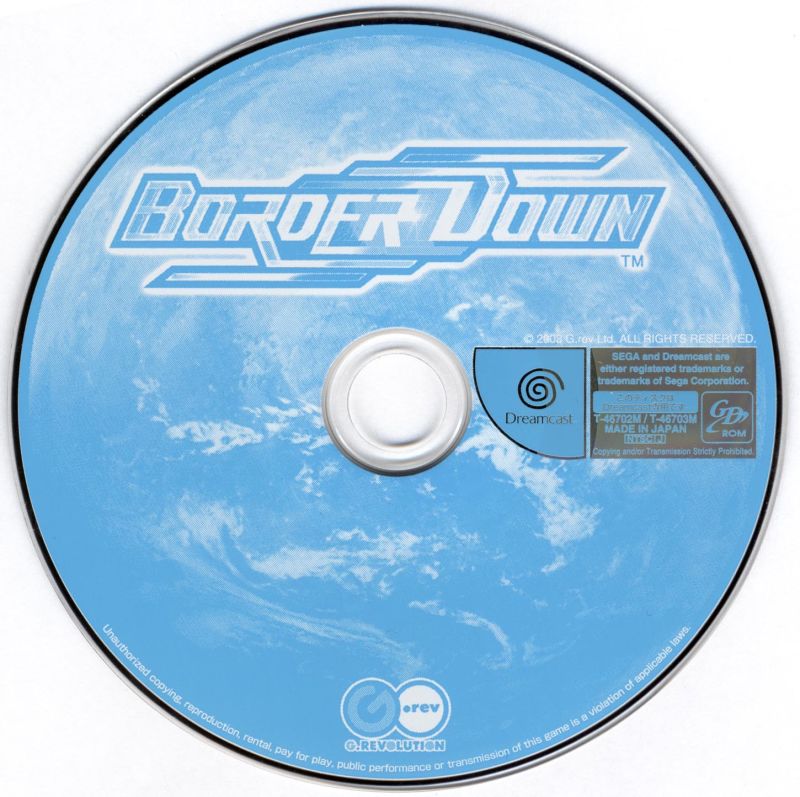 Border Down (ボーダーダウン) is a Shoot 'Em Up video game published by G.rev released on September 25th, 2003 for the SEGA Dreamcast.