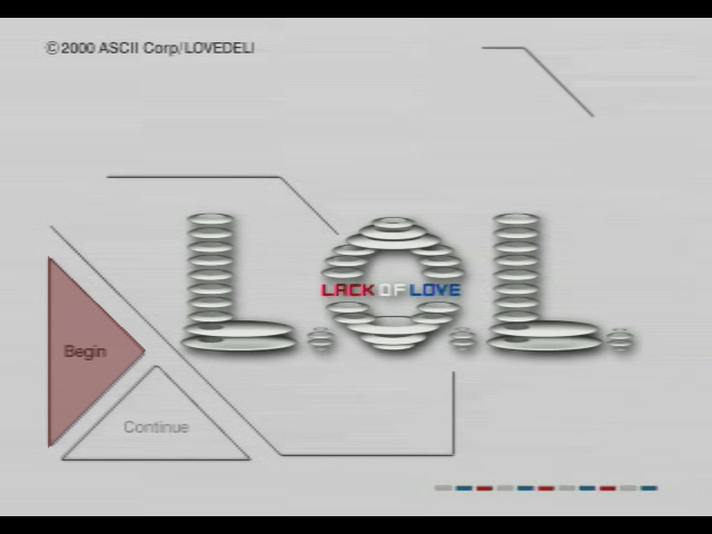 L.O.L: Lack of Love (エル・オー・エル) is a Simulation video game published by ASCII Entertainment released on November 2nd, 2000 for the SEGA Dreamcast.