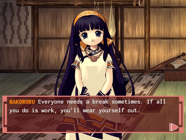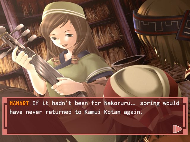 Nakoruru: Ano Hito Kara no Okurimono (ナコルル 〜あのひとからのおくりもの〜) is a Visual Novel video game published by Kool Kizz and developed by Kool Kizz released on March 28th, 2002 for the SEGA Dreamcast.