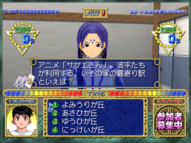 A quiz game based around the Ah! My Goddess / Oh! My Goddess! franchise, seeing you answer questions posed by various characters in the manga/series. It looks decent enough, but as there’s no ‘action’ to speak of, and just questions, it’s not that exciting. As someone who has no knowledge of the source material and can’t read the copious amounts of Japanese text that abounds within the game, it was pretty much unplayable for me, and will be the same for anyone who isn’t proficient in the language. Even if you’re able to read what’s going on, you’d need to be a big fan of the series to get much out of the game.