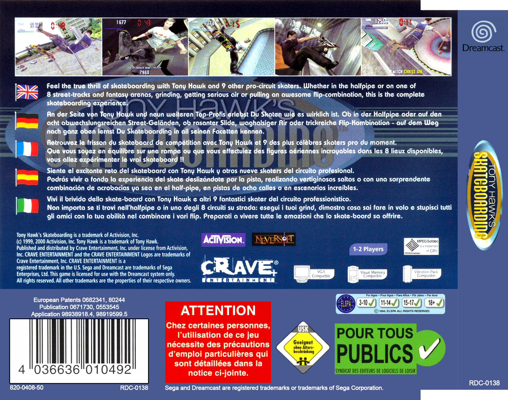 This is the Dreamcast PAL version of “Tony Hawk’s Pro Skater” (the first game).