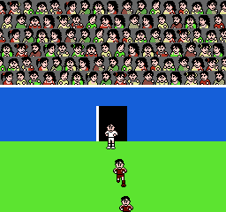 Surprisingly well done soccer game considering it’s for the disk system. All players have a sad expression for some reason, maybe they didn’t wanna play.