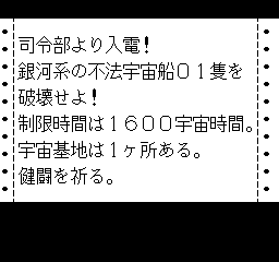 Pulsar no Hikari: Space Wars Simulation (パルサーの光) is a Strategy video game published by Soft Pro released on 1987 for the FDS.