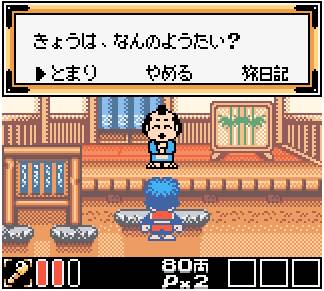 Ganbare Goemon - Hoshizorashi Dynamites Arawaru!! (がんばれゴエモン〜星空士ダイナマイッツあらわる!!〜) is a Action/Platformer 2D video game published by Konami released on December 21st, 2000 for the GB Color.