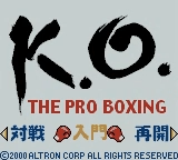 K.O. The Pro Boxing (K.O. ザ・プロボクシング) is a Boxing/Fighting/Sports video game published by Altron released on August 11th, 2000 for the GB Color.