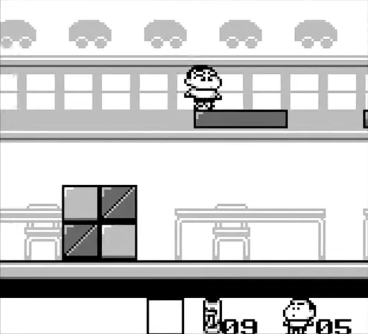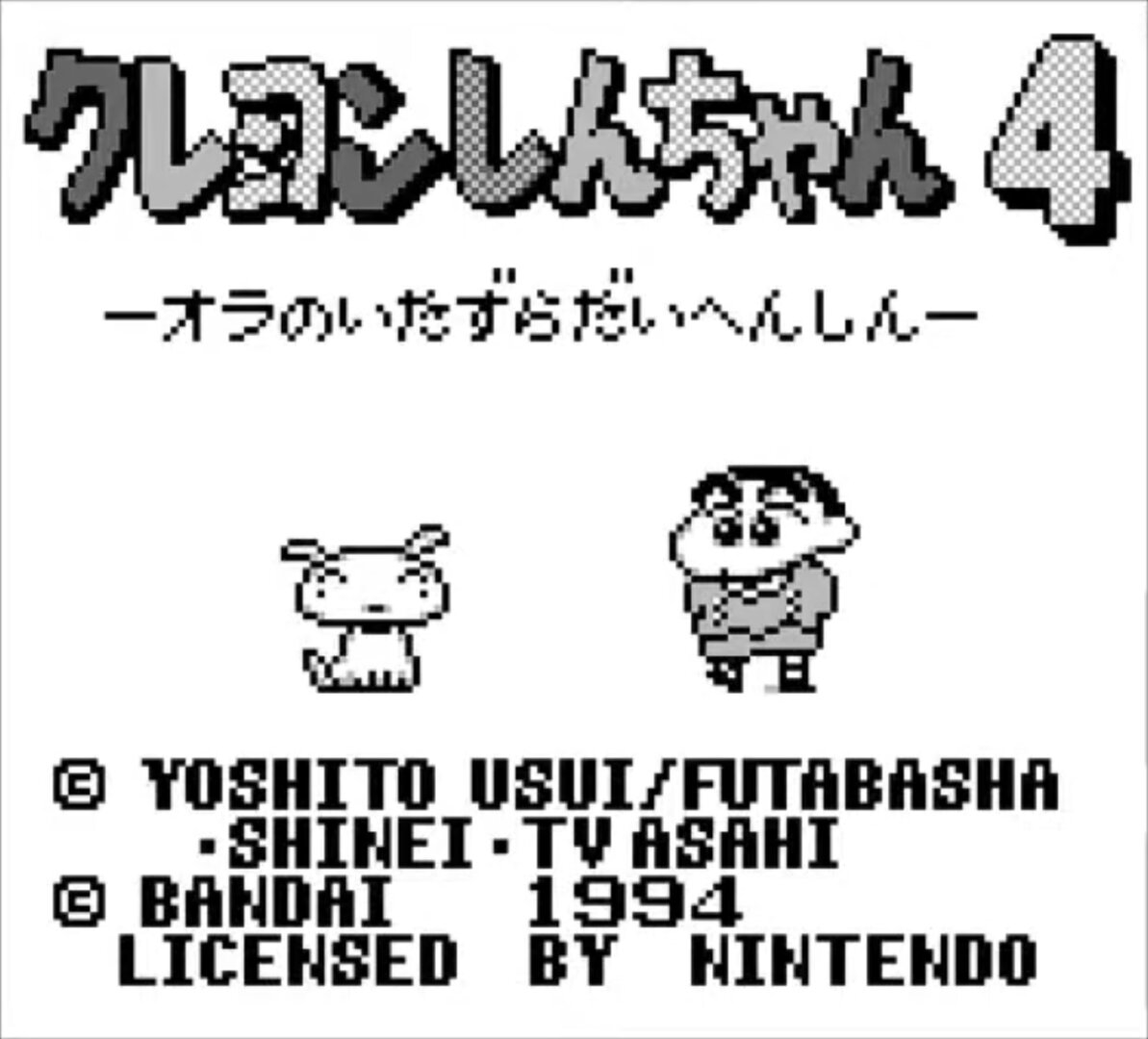 Crayon Shin-chan 4: Ora no Itazura Daihenshin (クレヨンしんちゃん4 オラのいたずら大変身) is a Platformer 2D video game published by Bandai released on August 26th, 1994 for the GameBoy.