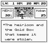Nekojara Monogatari (ネコジャラ物語) is a RPG video game published by KEMCO released on December 14th, 1990 for the GameBoy.