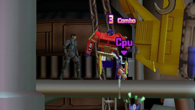 DreamMix TV World Fighters is Crossover game made by Konami, Hudson And Takara there is many characters such as Solid Snake, Simon Belmont, Bomber-man, Megatron and others.