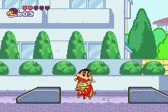 Crayon Shin-Chan: Arashi no Yobu Cinema-Land no Daibouken! is a Platformer 2D video game published by Banpresto released on April 16th, 2004 for the GBA.
