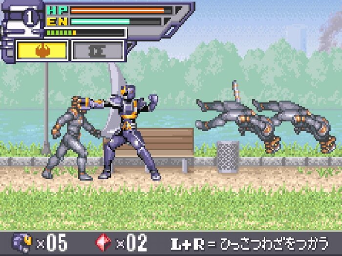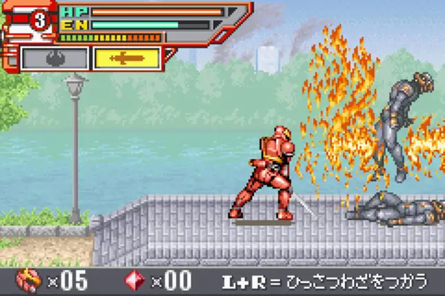 This is a beat ’em up based on Toho’s second (and best) sentai series, where you play as 3 Power Rangers-like characters fighting numerous mooks and bosses and occasionally you fight a huge monster in your giant mech (but that’s more of a mini game). The gameplay isn’t varied but the core fighting is very meaty, satisfying and packs a punch like a proper beat ’em up should. The missions are bite-sized so it’s perfect for portable gaming.