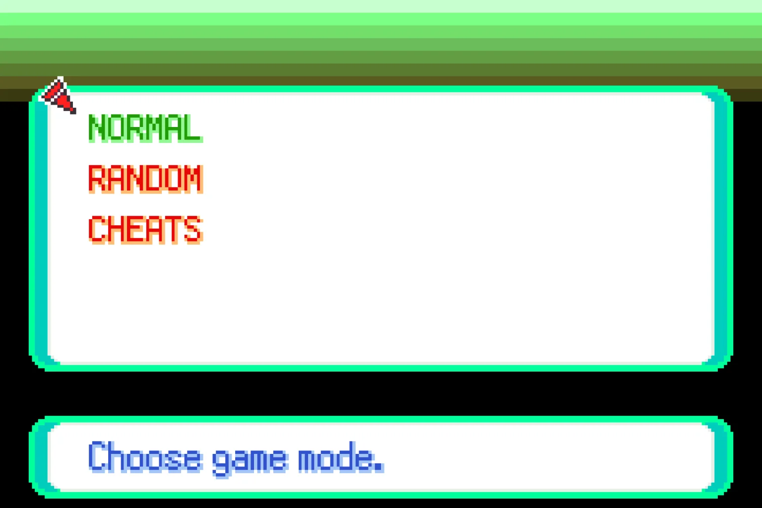 The game also offers in-game modes like Normal to play the game traditionally, Random to randomize the experience, and Cheats to enable in-game cheats during your adventure.