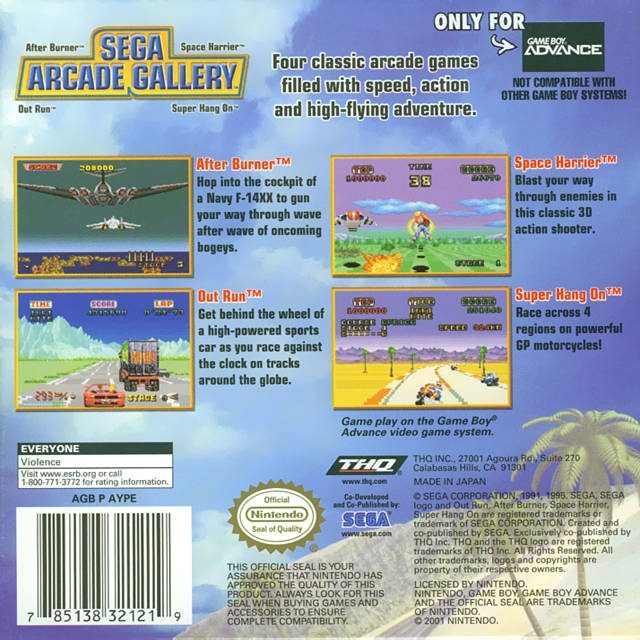 SEGA Arcade Gallery is a Compilation video game published by SEGA released on May 21st, 2003 for the GBA.