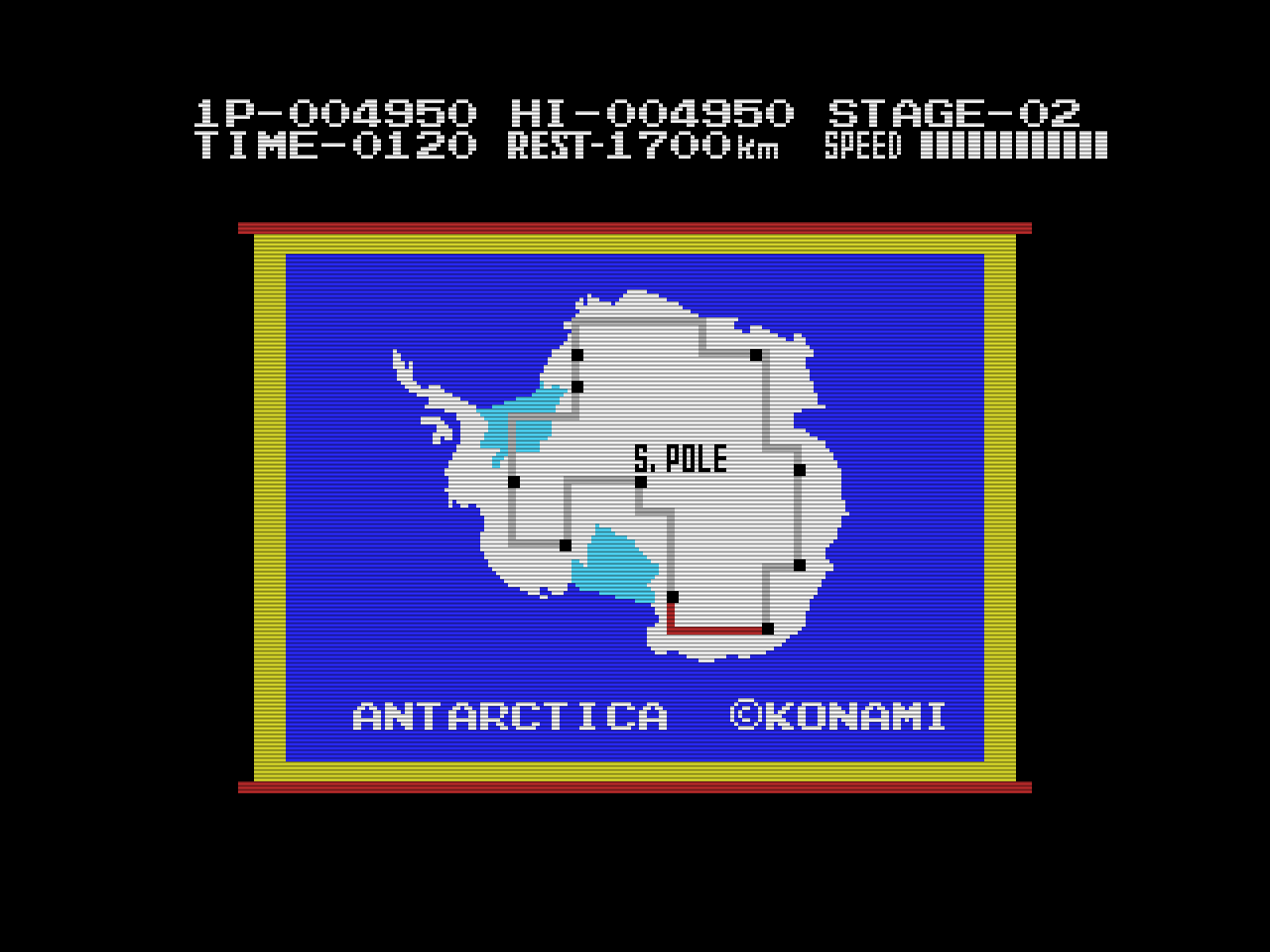 Antarctic Adventure (けっきょく南極大冒険) is a Racing video game published by Konami released on 1983 for the MSX.
