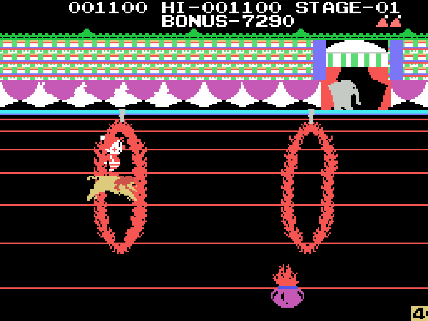 Circus Charlie (サーカスチャーリー) is a Platformer 2D video game published by Konami released on 1984 for the MSX.