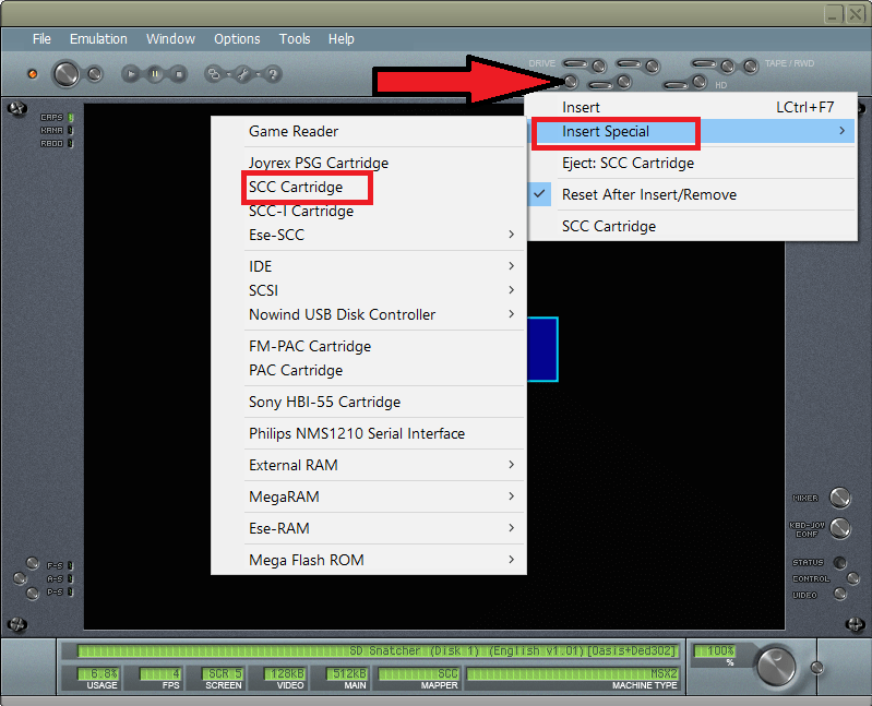 So if you wanted to play Oasis translation you'd need something like the Stand alone BlueMSX and insert the sound cart.