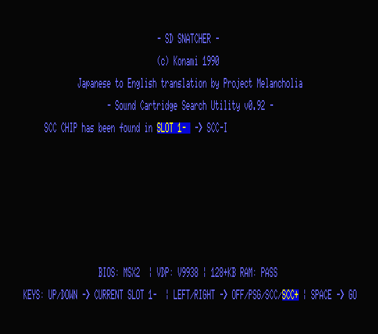 Alternatively the Project Melancholia translation can bypass the SCC cart requirement, allowing you to play on RetroArch but you'll have to choose an inferior sound chip to play (PSG audio).