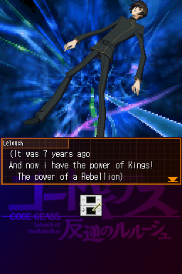 Code Geass: Hangyaku no Lelouch (コードギアス 反逆のルルーシュ) is a Action video game published by Bandai Namco Games released on October 25th, 2007 for the DS.