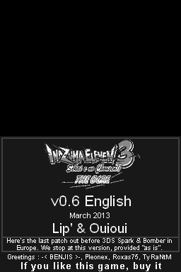 Inazuma Eleven 3: Sekai Heno Chousen The Ogre! (イナズマイレブン3 世界せかいへの挑戦ちょうせん!! ジ・オーガ) is a Sports video game published by Level 5 released on December 16th, 2010 for the DS.