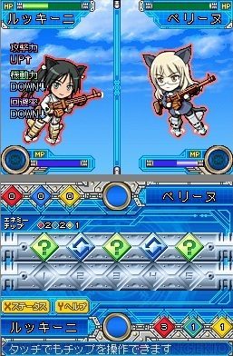 Strike Witches 2: Iyasu Naosu Punipunisuru (ストライクウィッチーズ2 いやす・なおす・ぷにぷにする) is a Action-Adventure/Visual Novel video game published by KADOKAWA released on October 21st, 2010 for the DS.