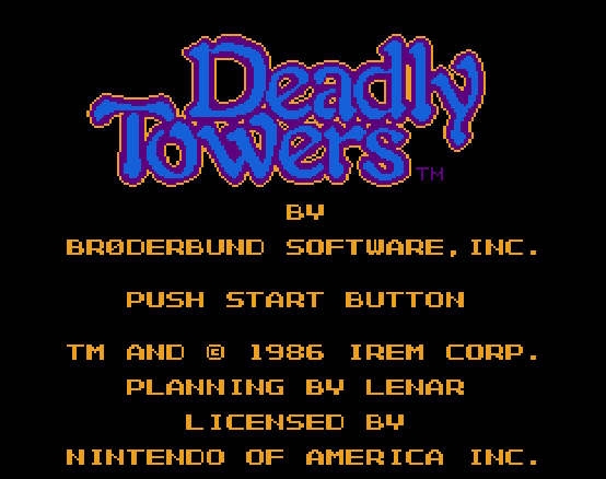 Deadly Towers (魔鐘) is a Action RPG video game published by Broderbund, Lenar released on 1986 for the NES.