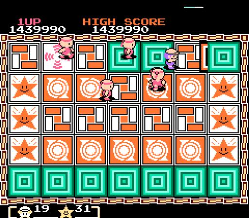 Mendel Palace (クインティ ) is a Action/Arcade/Puzzle video game published by Game Freak, Hudson Soft, Namco released on 1989 for the NES.