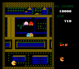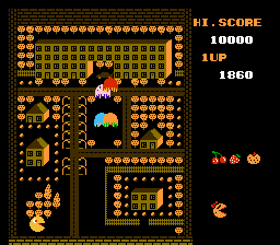 Some sort of cursed hack of Ms. Pac-Man, there are no mazes but eerie suburbs, roam the streets like a lost soul.