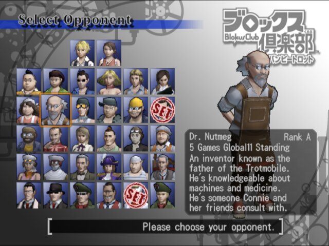 Blokus Club with Bumpy Trot is a Board Game/Puzzle video game published by Irem released on November 17th, 2005 for the PlayStation 2.