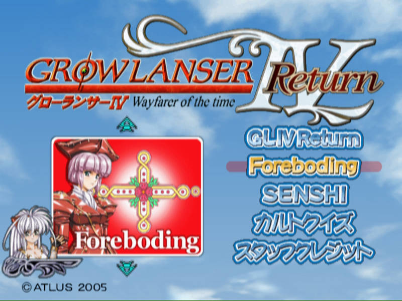 Growlanser IV: Wayfarer of the Time - Return (グローランサーIV リターン ウェイファーラー・オブ・ザ・タイム) is a Visual Novel video game published by Atlus released on March 10th, 2005 for the PlayStation 2.