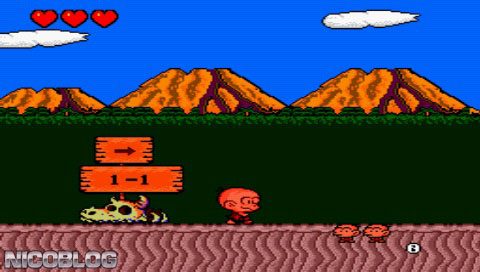 Bonk's Adventure is a Platformer 2D video game published by Hudson Soft released on June 2nd, 2011 for the PlayStation Portable.