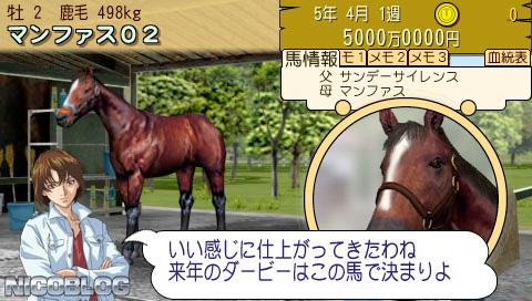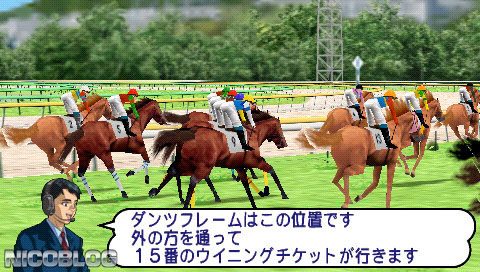 Derby Time (ダービータイム) is a Sports video game published by Sony released on April 21st, 2005 for the PlayStation Portable.