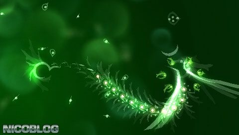 It’s a bit confusing in the beginning, so let me explain a bit of the controls for your ease. You use the analog stick only, basically, and eat these weird organisms. These organisms come in two main types; aggressive or submissive. Usually most of them are submissive, meaning that they run when you try to eat them, and generally easy to consume. The other aggressive type is the one that you can eat, but you have to find it’s weak spot so it doesn’t eat YOU first. When it eats you, it can take your ‘segments’ that you gathered from eating other organisms. If they completely consume you….
