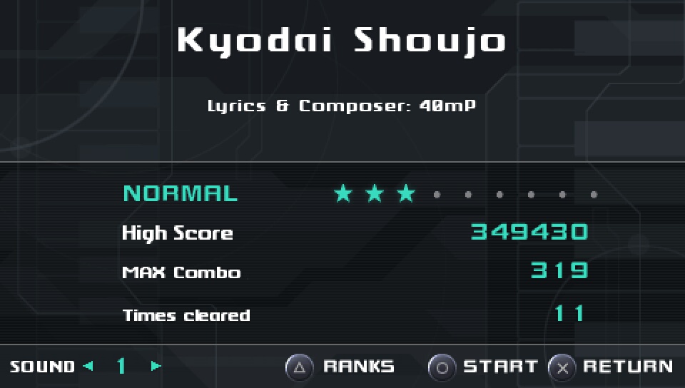 -Info screen (name of songs romanized and buttons translated)