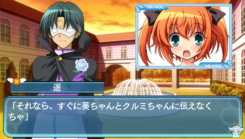 Kaitou Tenshi Twin Angel: Toki to Sekai no Meikyuu (快盗天使ツインエンジェル〜時とセカイの迷宮〜) is a Visual Novel video game published by Alchemist released on August 25th, 2011 for the PlayStation Portable.