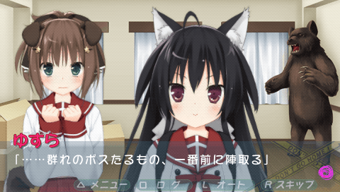 Kono Bushitsu wa Kitaku Shinai Bu ga Senkyo Shimashita. Portable: Gakuen Dog Ear Hen (この部室は帰宅しない部が占拠しました。 ぽーたぶる 学園ドッグ・イヤー編) is a Visual Novel video game published by BOOST ON released on October 25th, 2012 for the PlayStation Portable.