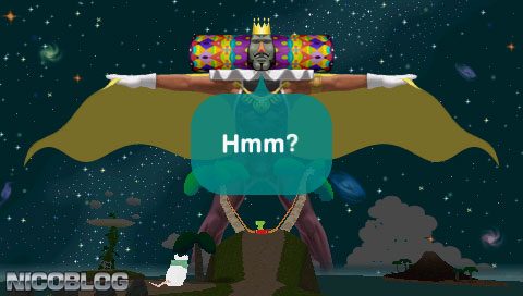 The Prince is the small guy there that was given the job of producing new islands with the “Katamari.” Katamari is basically a ball that sticks anything it rolls over onto it.