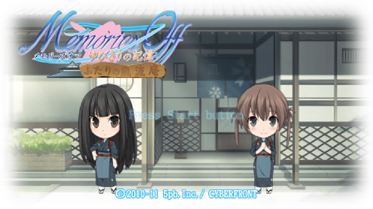Memories Off: Yubikiri no Kioku - Futari no Fuuryuuan (メモリーズオフ ゆびきりの記憶 ふたりの風流庵) is a Visual Novel video game published by 5pb released on May 26th, 2011 for the PlayStation Portable.