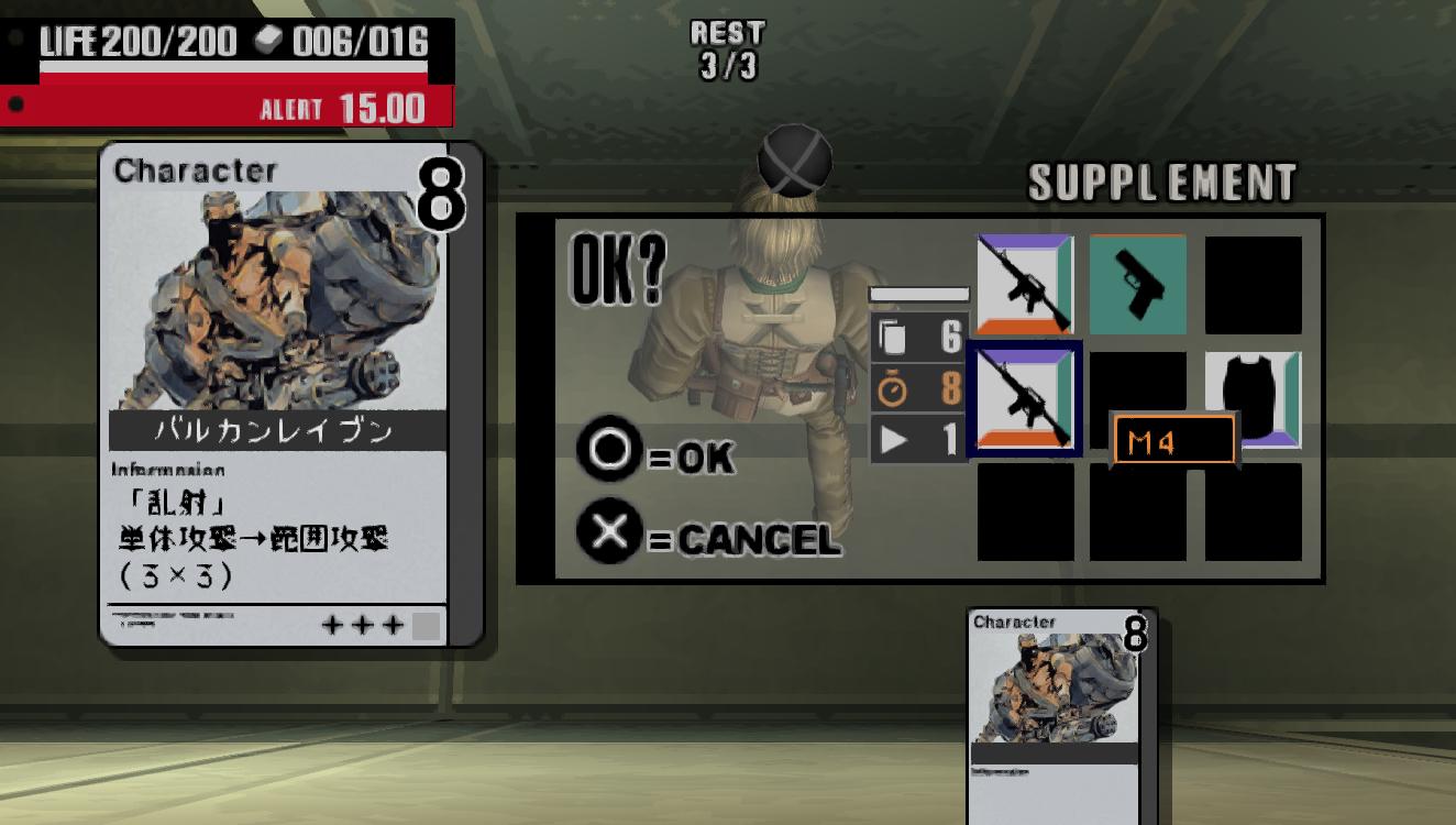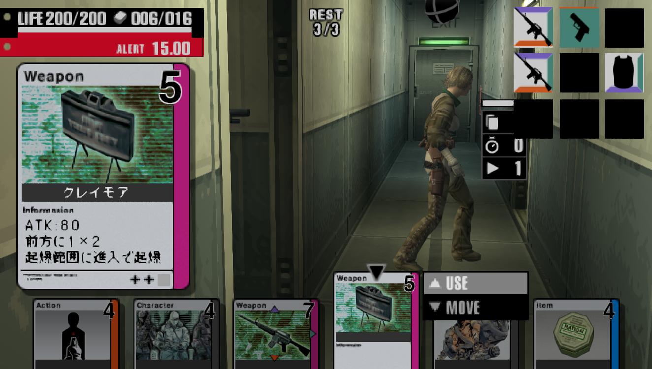 Metal Gear Acid (メタルギア アシッド) is a Strategy video game published by Konami released on December 16th, 2004 for the PlayStation Portable.