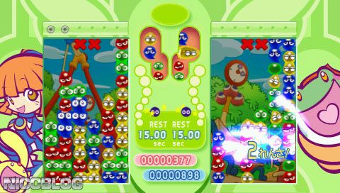 Puyo Puyo Fever 2 (ぷよぷよフィーバー2【チュー!】) is a Puzzle video game published by SEGA released on November 24th, 2005 for the PlayStation Portable.