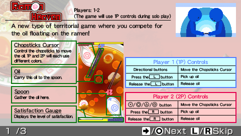 Ramen Heaven is a Miscellaneous/Puzzle video game published by SCEA released on May 4th, 2010 for the PlayStation Portable.