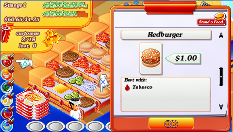 Stand O' Food is a Action/Miscellaneous/Puzzle video game published by G5 Software released on December 10th, 2009 for the PlayStation Portable.