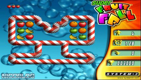 Super Fruitfall Deluxe Edition is a Puzzle video game published by System 3 released on August 10th, 2007 for the PlayStation Portable.