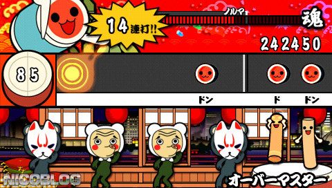 Taiko no Tatsujin Portable (太鼓の達人 ぽ〜たぶる(v2)) is a Rhythm video game published by Namco released on August 4th, 2005 for the PlayStation Portable.