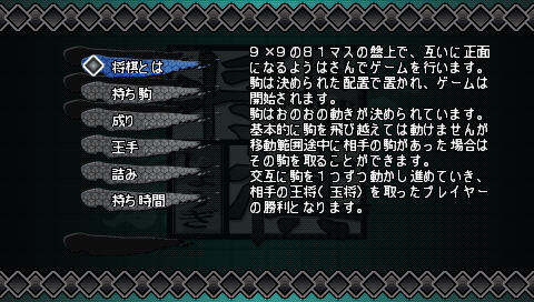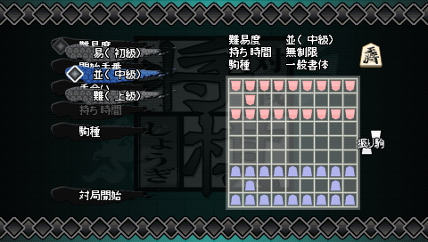 Taisen Shougi (対戦将棋) is a Board Game/Miscellaneous video game published by Best Media released on July 28th, 2010 for the PlayStation Portable.