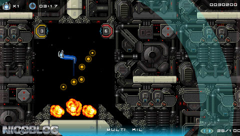 Velocity is a Action/Shoot 'Em Up/Shooter video game published by FuturLab released on February 9th, 2012 for the PlayStation Portable.