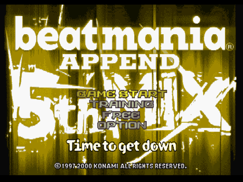 BeatMania Append 5th Mix: Time to Get Down (ビートマニア アペンド フィフスミックス) is a Music/Rhythm video game published by Konami released on March 2nd, 2000 for the PlayStation.