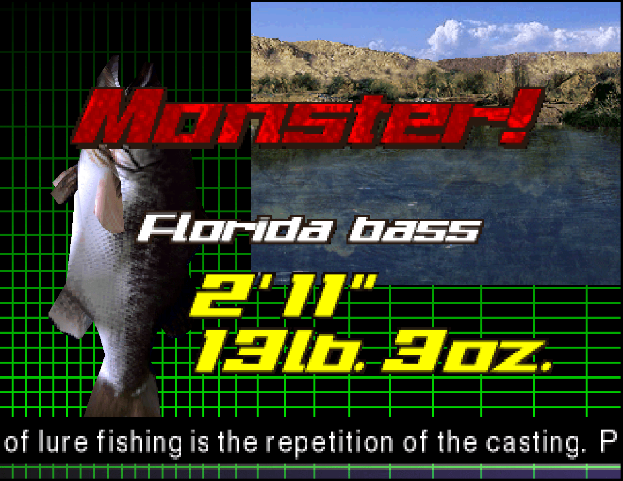 Big Ol' Bass 2 is a Fishing video game published by Konami released on November 1st, 2000 for the PlayStation.
